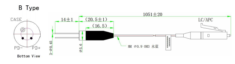 InGaAs Pigtailed Fotodiodları 50µm və ya 62.5µm seçilə bilən nüvə diametri və 900-1700nm aşkarlama dalğası diapazonu ilə çox rejimli lifi birləşdirir.