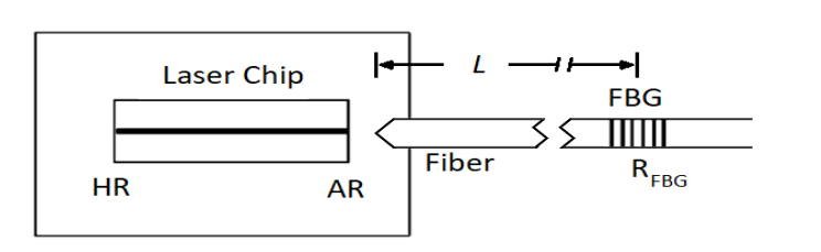Fiber Bragg Grating (FBG) istifadə edərək xarici boşluq lazerinin qurulması aşağı qiymətli lazerlərin performansını artırmaq üçün sərfəli bir həlldir. Şəkil 1-də göstərildiyi kimi, FBG xarici boşluq lazerini meydana gətirərək, adətən emissiya çipinə yaxın olan lif pigtailinə yazılır.